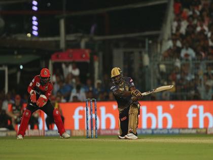 बंगळुरूच्या 213 धावांच्या प्रत्युत्तरात कोलकाता नाइट रायडर्सने 11.5 षटकांत 4 बाद 79 धावा केल्या होता. हा सामना कोलकाताच्या हातून निसटला असेच चित्र होते. मात्र, रसेलने तुफान आतषबाजी करताना सामन्यात चुरस निर्माण केली. नितीश राणानेही त्याला उत्तम साथ दिली आणि अखेरच्या षटकापर्यंत थरार रंगला. रसेलने राणासह 48 चेंडूंत 118 धावांची भागीदारी केली. मात्र, अखेरच्या षटकात रसेल बाद झाला आणि बंगळुरूने 10 धावांनी विजय मिळवला.