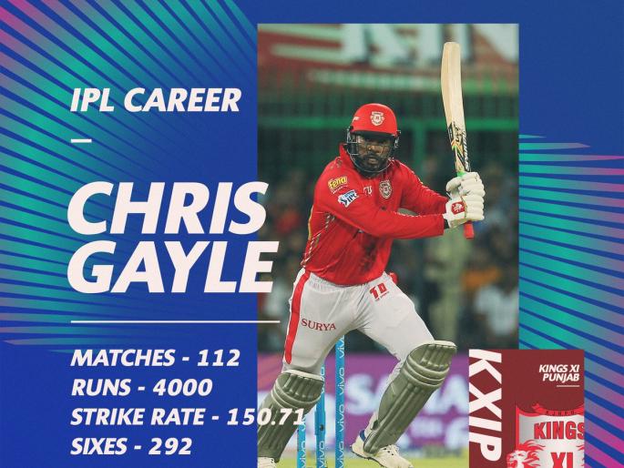 या सामन्यापूर्वी गेलच्या नावावर 112 सामन्यांत 3994 धावा होत्या. इंग्लंडविरुद्धच्या वन डे मालिकेत गेलने 4 सामन्यांत 106 च्या सरासरीने 424 धावा कुटल्या होत्या. या मालिकेत त्याने 20 चौकार व 39 षटकार खेचले होते. त्याचा हाच फॉर्म आयपीएलमध्येही पाहण्यासाठी चाहते उत्सुक आहेत. आयपीएलमध्ये गेलच्या नावावर सहा शतकं आणि 24 अर्धशतकं आहेत.