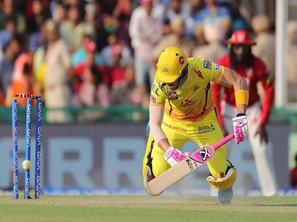 नाणेफेक जिंकून पंजाबने प्रथम गोलंदाजीचा निर्णय घेत प्ले ऑफचे स्वतःचे दरवाजे बंद करून घेतले. पंजाबला प्ले ऑफच्या आशा जीवंत राखण्यासाठी या सामन्यात 251+ धावांच्या फरकाने किंवा चेन्नईला 100च्या आत गुंडाळावे लागणार आहे. त्याचबरोबर त्यांना कोलकाताच्या पराभवाची प्रतीक्षा पाहावी लागेल. पण, नाणेफेक जिंकून प्रथम गोलंदाजीचा निर्णय घेऊन त्यांनी प्ले ऑफचा मार्ग स्वतः बंद केला आहे. चेन्नईने पॉवर प्लेमध्ये 1 बाद 42 धावा केल्या. यंदाच्या आयपीएलमधील ही पॉवर प्लेमधील पाचवी सर्वोत्तम कामगिरी आहे. सॅम कुरनने पाचव्या षटकात वॉटसनला ( 7) त्रिफळाचीत केले. पण, फॅफ ड्यू प्लेसिस आणि सुरेश रैना यांनी चेन्नईचा डाव सावरला. चेन्नईने 9 षटकांत 1 बाद 67 धावा केल्या.