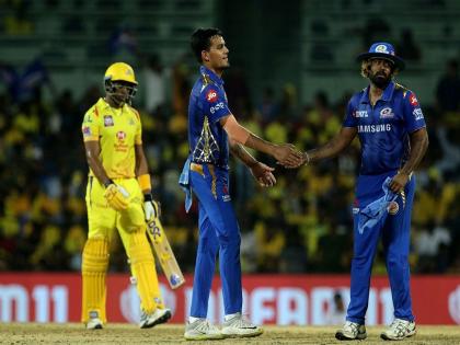 चेन्नई, आयपीएल 2019 : लसिथ मलिंगाच्या गोलंदाजीच्या जोरावर मुंबई इंडियन्सने शुक्रवारी चेन्नई सुपर किंग्सला 46 धावांनी पराभूत केले. मलिंगाने या सामन्यात 4 षटकांत 37 धावा देत 4 विकेट घेतल्या. मुंबई इंडियन्सने विजयासाठी ठेवलेल्या 156 धावांच्या लक्ष्याचा पाठलाग करताना चेन्नईचा संपूर्ण संघ 17.4 षटकांत 109 धावांत तंबूत परतला. मलिंगाने शेन वॉटसन ( 8), ड्वेन ब्राव्हो ( 20), मिशेल सँटनर ( 22) आणि हरभजन सिंग ( 1) यांना बाद केले.