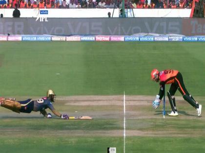 लीनने 45 चेंडूंत अर्धशतक पूर्ण केले. पण, पुढच्याच चेंडूवर हैदराबादचा कर्णधार केन विलियम्सनने अप्रतिम झेल टिपत त्याला माघारी पाठवले. खलीलने सामन्यातील तिसरी विकेट घेतली. लीनच्या 51 धावांच्या खेळीत 4 चौकार व एका षटकाराचा समावेश होता. 18वे षटक पियूष चावलानं व्यर्थ घालवले. रशीद खानने टाकलेल्या त्या षटकात कोलकाताला केवळ एकच धाव घेता आली.