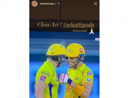 या दोघांनी KXIPच्या गोलंदाजांचा चांगलाच समाचार घेताना दमदार भागीदारी केली. वॉटसन ५३ चेंडूंत ११ चौकार व ३ षटकारांसह नाबाद ८३ धावा केल्या, तर फॅफनं ५३ चेंडूंत ११ चौकार व १ षटकारासह ८७ धावांवर नाबाद राहीला. चेन्नईनं १७.४ षटकांत बिनबाद १८१ धावा केल्या. या विजयानंतर साक्षीची इस्टा स्टोरी व्हायरल झाली आहे.