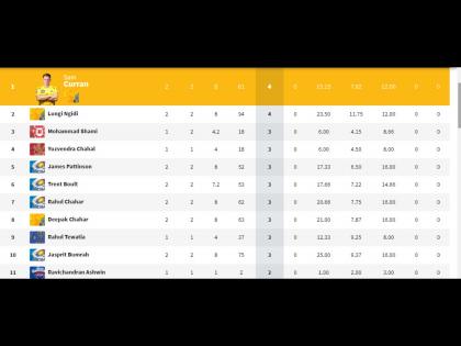 Chennai Super Kingsचा अष्टपैलू खेळाडू सॅम कुरन 4 विकेटसह पर्पल कॅपच्या शर्यतीत आघाडीवर आहे.