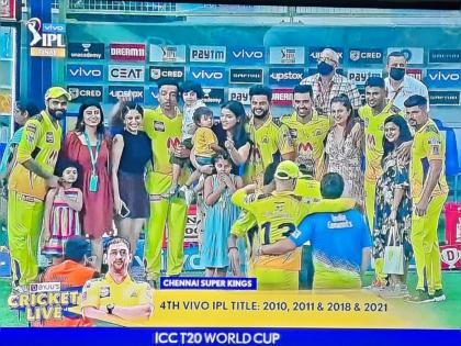 IPL 2021 Final, Chennai Super Kings vs Kolkata Knight Riders Live Updates : चेन्नई सुपर किंग्स ( CSK)नं IPL 2021 Final मध्ये कोलकाता नाइट रायडर्सवर ( KKR) २७ धावांनी विजय मिळवताना चौथं जेतेपद नावावर केलं. चेन्नईनं विजयासाठी ठेवलेल्या १९३ धावांच्या लक्ष्याचा पाठलाग करताना कोलकाताचा संघ ९ बाद १६५ धावा करू शकला. बिनबाद ९१ वरून कोलकाताचे ९ फलंदाज ७४ धावांत माघारी परतले. या विजयानंतर MS Dhoniची पत्नी साक्षी व मुलगी जिवा यांनी मैदानावर धाव घेतली. Sakshi नं धोनीला मिठी मारून तिचा आनंद व्यक्त केला. ( A family hug between MS Dhoni family.)
