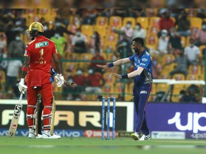 IPL 2021 , Mumbai Indians vs Punjab Kings Live Updates : सलग तीन पराभवानंतर मुंबई इंडियन्सनं ( MI) पंजाब किंग्सविरुद्ध मुसंडी मारलेली पाहायला मिळत आहे. कृणाल पांड्यानं पंजाबला पहिला धक्का दिला आणि त्यानंतर किरॉन पोलार्डनं एकाच षटकात ख्रिस गेल व लोकेश राहुल या दोन मोठ्या फलंदाजांना बाद करून इतिहास रचला. ट्वेंटी-२० क्रिकेटमध्ये त्यानं या दोन विकेटसह ३०० बळी पूर्ण केले. ट्वेंटी-२०त ३०० विकेट्स व १० हजार+ धावा असा दुहेरी पराक्रम करणारा तो जगातला पहिला खेळाडू ठरला आणि म्हणूनच त्याचं सेलिब्रेशनही भन्नाट होतं. पण, या विकेट्सपूर्वी कृणाल पांड्याच्या एका कृतीनं साऱ्यांचं लक्ष वेधलं अन् सोशल मीडियावर आता त्याचीच चर्चा सुरू आहे.