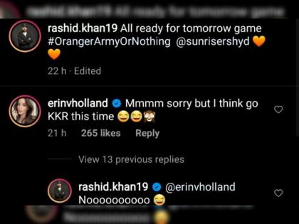 कोलकाता विरुद्ध हैदराबादचा कर्णधार डेव्हिड वॉर्नरने सर्वाधिक ६१६ धावा केल्या आहेत आणि भुवनेश्वर कुमारने सर्वाधिक १९ विकेट घेतल्या आहेत. कोलकाताकडून शुबमन गिल यानं हैदराबादविरुद्ध सर्वाधिक ४४० धावा केल्या आहेत तर कुलदीप यादव आणि सुनील नरेन यांनी सर्वाधिक १० बळी घेतले आहेत. यावरून हॉलंड हीनं राशिदच्या एका पोस्टवर कमेंट केली. उद्याच्या सामन्यासाठी तयार आहे.. राशिदच्या या कमेंटवर हॉलंड हिनं कोलकाता जिंकेल, अशी कमेंट केली. त्यावर राशिद नाही असं म्हणाला. IPL 2021, IPL 2021 latest news