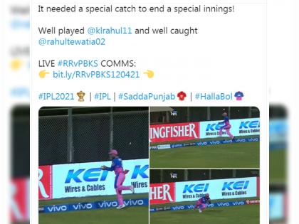 IPL 2021 : RR vs PBKS T20 Live Score Update : दीपक हुडा ( Deepak Hooda), लोकेश राहुल ( KL Rahul) आणि ख्रिस गेल ( Chris Gayle) या त्रिकुटानं राजस्थान रॉयल्सच्या ( Rajasthan Royals) गोलंदाजांच्या चिंधड्या उडवल्या. दीपक हुडा व लोकेश राहुल या जोडीनं ४७ चेंडूंत १०५ धावांची भागीदारी करताना पंजाब किंग्सला ( Punjab Kings) दोनशेपार धावा करून दिल्या. यंदाच्या आयपीएलमध्ये दोनशेपार धावांची ही पहिलीच खेळी ठरली. लोकेश राहुलला शतकानं हुलकावणी दिली. ५० चेंडूंत ७ चौकार व ५ षटकारांसह तो ९१ धावांवर माघारी परतला. राहुल टेवाटियानं सीमारेषेवर अफलातून झेल टिपला. IPL 2021 : RR vs PK T20 Live Score Update
