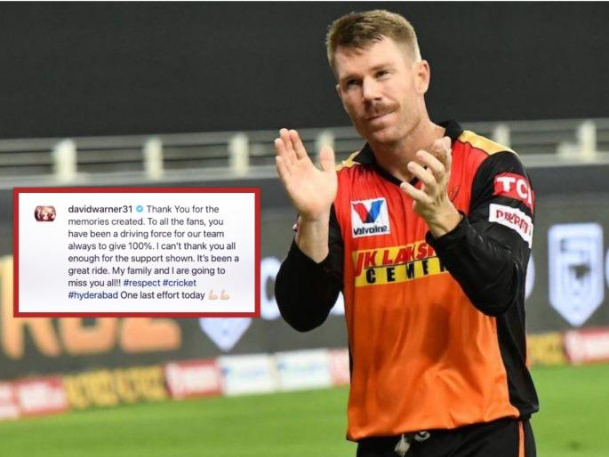 IPL 2021, SRH vs MI Live Updates : इंडियन प्रीमिअर लीगच्या पुढील पर्वात ( IPL 2022) दोन नवीन संघ दाखल होणार असल्यामुळे पुन्हा एकदा लिलाव होणार आहे. त्यामुळे सर्वच संघांमध्ये बदल पाहायला मिळतील. बीसीसीआयनं अजूनही त्यांच्या रिटेशन नियमांची घोषणा केलेली नाही. त्यामुळे सध्या खेळत असलेल्या ८ फ्रँचायझींमधील कोणते खेळाडू कायम राहतील याची गॅरंटी नाही. त्यात आजच्या साखळी फेरीतील अखेरच्या सामन्यात सनरायझर्स हैदराबादनं ( SRH) डेव्हिड वॉर्नरला ( David Warner) बाकावर बसवले. ज्या खेळाडूनं SRHला एकमेव आयपीएल जेतेपद जिंकून दिलं, त्याच्यावर प्रेक्षकांमध्ये बसून संघाचा झेंडा हलवत राहण्याची पाळी आली. आजच्या सामन्यात तरी त्याला संधी द्यायला हवी होती, असे चाहत्यांना वाटत होते. पण, आजही संधी न मिळाल्यानं वॉर्नरनं इंस्टाग्रावर भावनिक पोस्ट लिहिली. David Warner says his goodbyes to the #SRH fans