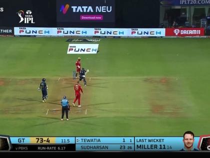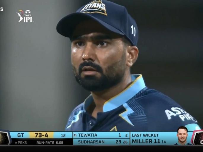 हार्दिक पांड्या सलग तिसऱ्या सामन्यात अपयशी ठरला. १ धावेवर रिषी धवनने त्याची विकेट घेतली. गुजरातचे आघाडीचे तीन फलंदाज ४४ धावांवर माघारी परतले. साई सुदर्शन व डेव्हिड मिलर यांनी गुजरातचा डाव सावरण्याचा प्रयत्न केला. पण, लाएम लिव्हिंगस्टोनच्या फिरकीच्या जाळ्यात मिलर अडकला अन् ११ धावांवर झेलबाद होऊन माघारी परतला. गुजरातचा स्टार फलंदाज राहुल तेवातिया मैदानावर आला. लिव्हिंगस्टोनच्या षटकातील अखेरच्या चेंडूवर तेवातिया एक धाव घेण्यासाठी धावला, परंतु नॉन स्ट्रायकरला असलेल्या सुदर्शनकडून काहीच रिस्पॉन्स आला नाही. चेंडू पंजाबच्या खेळाडूच्या हातात असल्यामुले सुदर्शन धावला नाही. यावरून तेवातिया भडकलेला दिसला आणि त्याने लाईव्ह मॅचमध्ये सुदर्शनला सुनावले.