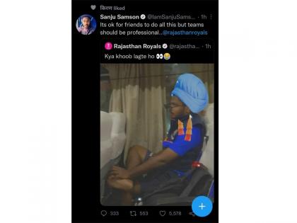 राजस्थान रॉयल्सच्या ट्विटर हँडलवर दिल्ली कॅपिटल्सचा कर्णधार रिषभ पंतचा बसमधून प्रवास करतानाचा एक फोटो ट्विट करण्यात आला होता. पण या फोटोसोबत छेडछाड करत एक मीम तयार करण्यात आलं होतं. यात रिषभच्या फोटोवर त्याला कानातले घातले गेल्याचं दाखवलं गेलं होतं. तसंच डोक्यावर एक भली मोठी टोपी आणि नाकावर गॉगल दाखवण्यात आला होता. त्यावर ''क्या खूप लगते हों'', असं कॅप्शन देण्यात आलं होतं. या ट्विटवर राजस्थान रॉयल्सचा कर्णधार संजू सॅमसन यानं तीव्र शब्दात संताप व्यक्त केला. "आपल्या मित्र मंडळींसोबत असं वागणं एकवेळ योग्य ठरेल. पण संघांनी व्यावहारिक दृष्टीकोन ठेवायला हवा", असं संजू सॅमसननं म्हटलं. यानंतर राजस्थान रॉयल्सच्या सोशल मीडिया टीमकडून आक्षेपार्ह ट्विट डिलीट करण्यात आलं.