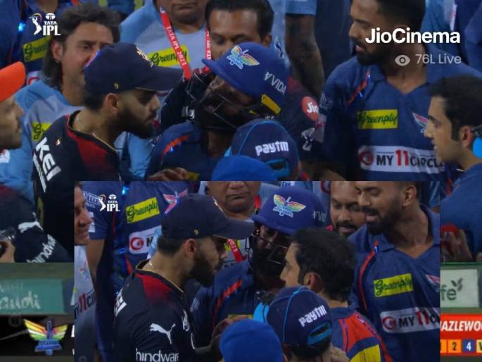 लखनौमध्ये झालेल्या या सामन्यात विराट कोहली खूपच आक्रमक दिसला... झेल घेताच त्याने गौतम गंभीर स्टाईलने तोंडावर बोट ठेवून प्रेक्षकांना गप्प राहण्याची कृती केली आणि मॅच संपल्यानंतर राडाच झाला..