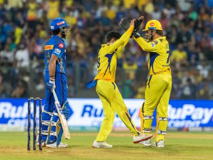 रोहित (२१) व इशान ( ३२) यांच्या विकेटनंतर यजमानांची गाडी 'लोकल'सारखी घसरली. सूर्यकुमार यादव ( १),  कॅमेरून ग्रीन( १२) आणि अर्शद खान ( १)  अपयशी ठरले. तिलक वर्मा अन् टीम डेव्हिड यांनी काहीकाळ संघर्ष केला. रवींद्र जडेजाने १८ चेंडूंत २२ धावा करणाऱ्या तिलकला मागे पाठवले. जडेजाने २० धावांत ३ विकेट्स घेतल्या. सँटनरनेही २८ धावांत २ बळी टिपले. टीम डेव्हिड २२ चेंडूंत ३१ धावा करून माघारी परतला. मुंबई इंडियन्सने ८ बाद १५७ धावा केल्या. तुषार देशपांडेनेही ३१ धावांत २ बळी टिपले.