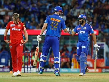 कॅमेरून ग्रीन आणि रोहित शर्मा यांनी MIची खिंड लढवताना पॉवर प्लेमध्ये १ बाद ५४ धावा केल्या. या दोघांनी पन्नास धावांची भागीदारीही पूर्ण केली. रोहित शर्माने खेचलेला तिसरा षटकार विक्रमी ठरला. आयपीएलमध्ये २५० षटकार खेचणारा रोहित पहिला भारतीय फलंदाज ठरला. आतापर्यंत ख्रिस गेल ( ३५७) व एबी डिव्हिलियर्स ( २५१) यांनी सर्वाधिक षटकार खेचले आहेत. रोहित या विक्रमात तिसऱ्या क्रमांकावर येतो आणि त्यानंतर महेंद्रसिंग धोनी ( २३५) व विराट कोहली ( २२९) यांचा क्रमांक येतो. १२व्या षटकात लिएम लिव्हिंगस्टनला गोलंदाजीला आणले अन् त्याने रोहितची विकेट मिळवून दिली. रोहित २७ चेंडूंत ४ चौकार व ३ षटकारांसह ४४ धावांवर कॉट अँड बोल्ड झाला. ग्रीनसोबत त्याची ७६ धावांची भागीदारी संपुष्टात आली.