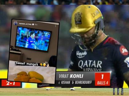 नवीनची इंस्टा स्टोरी व्हायरल होतेय आणि त्यावर नवीन MI vs RCB मॅच पाहताना दिसतोय आणि तो आंबे खातोय. याचा संदर्भ नेटिझन्सनी विराटच्या विकेटशी जोडला आहे.