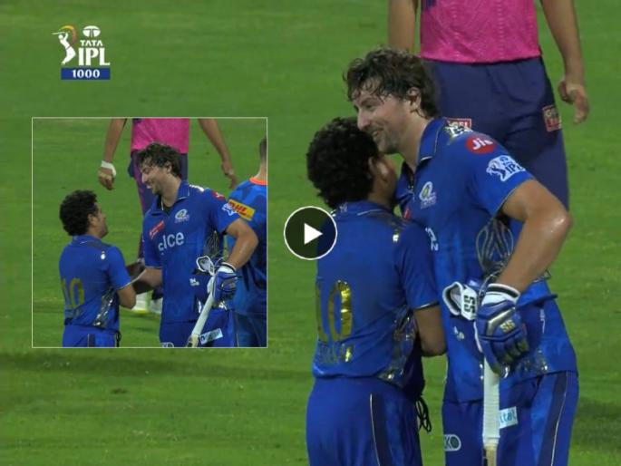 MI vs RR, IPL 2023: टीम डेव्हिडने राजस्थान रॉयल्सविरुद्ध 14 चेंडूत 45 धावा केल्या आणि 321 पेक्षा जास्त स्ट्राइक रेटने फलंदाजी केली. त्याच्या नाबाद खेळीत 5 षटकारांचा समावेश होता. तुम्ही क्रिकेटच्या मैदानावर सचिनसमोर भल्याभल्यांना नतमस्तक होताना पाहिलं असेल. पण, सचिनही हेच काम दुसऱ्यासाठी करताना क्वचितच पाहायला मिळतो. IPL च्या इतिहासातील 1000 व्या सामन्यातही असेच काहीसे घडले होते, जिथे सचिनने मुंबई इंडियन्सच्या विजयानंतर टीम डेव्हिडला मैदानावर उतरल्यानंतर थेट मिठी मारली.