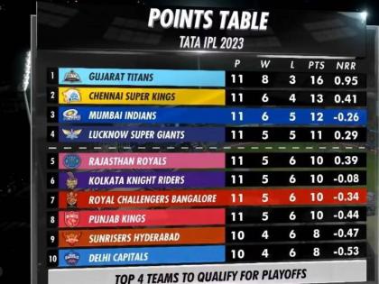 - आजच्या पराभवाने RCBच्या प्ले ऑफच्या आशा जवळपास धुळीस मिळवल्या आहेत. पण, राजस्थान रॉयल्स, कोलकाता नाइट रायडर्स, पंजाब किंग्स यांचे RCBसारखेच ११ सामन्यानंतर १० गुण आहेत. गुजरात टायटन्स १६ गुणांसह अव्वल स्थानावर आहेत आणि त्यांना एक विजय पुरेसा आहे.