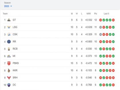हैदराबाद आणि कोलकाताच्या सामन्यानंतर आयपीएलच्या गुणतालिकेत बदल झाले आहे. गुजरातचा संघ अजूनही १२ गुणांसह पहिल्या स्थानी आहे. लखनौ दुसऱ्या स्थानी, चेन्नई तिसऱ्या स्थानी, तर राजस्थान चौथ्या स्थानी आहे. आरसीबी १० गुणांसह पाचव्या स्थानी, मुंबई सहाव्या स्थानी, पंजाब सातव्या स्थानी, तर कोलकाता ८ गुणांसह आठव्या क्रमांकावर आहे. हैदराबाद नवव्या स्थानी असून दिल्ली दहाव्या क्रमांकावर आहे. प्लेऑफचा विचार केल्यास हैदराबाद आणि दिल्लीला यापुढील सर्व सामने जिंकणे अनिवार्य आहे. तर सध्या तरी सर्व दहा संघांचा प्लेऑफपर्यंत पोहचण्याची संधी आहे.