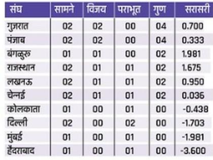 पंजाबच्या या विजयामुळे आयपीएल गुणतालिकेमध्ये मोठा बदल झाला आहे. गुजरात २ सामने जिंकत अजूनही पहिले स्थान कायम टिकवले आहे. तर पंजाबने राजस्थानविरुद्धचा सामना जिंकत दूसऱ्या स्थानावर झेप घेतली आहे. रॉयल चॅलेंजर्स बंगळुरुची तिसऱ्या स्थानी घसरण झाली असून राजस्थान रॉयल्स संघ चौथा स्थानावर आहे. लखनऊ सुपरजायंट्स पाचव्या स्थानावर, तर चेन्नई सुपर किंग्ज सहाव्या स्थानवर आहे. सातव्या स्थानावर कोलकात नाइट राइडर्स, आठव्या स्थानावर दिल्ली कॅपिटल, नवव्या स्थानावर मुंबई इंडियन्स आणि सनरायझर्स हैदराबाद दहाव्या क्रमांकावर आहे.