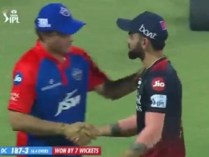 दिल्ली आणि बंगळुरू यांच्यात पहिल्या टप्प्यात झालेल्या लढतीत RCBचा विराट कोहली व DC चा मेंटॉर सौरव गांगुली यांच्यात तणावाचे चित्र पाहायला मिळाले होते. विराटने 'दादा'ला खून्नस दिली होती, तर दादानेही त्याच्याकडे दुर्लक्ष करताना हात मिळवणे टाळले होते. पण, आज पुन्हा हे दोंघ समोरासमोर आले, तेव्हा एकमेकांना हातही मिळवला अन् मिठीही मारली...