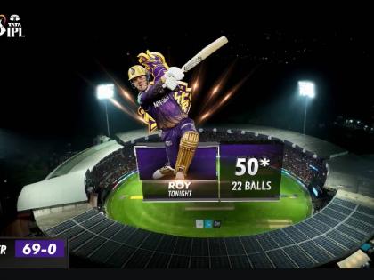 जेसन व एन जगदीशन यांनी पॉवर प्लेमध्ये ६६ धावा कुटल्या. जेसनने सहाव्या षटकात शाहबाज अहमदला चार खणखणीत षटकार खेचले. यंदाच्या आयपीएलमधील KKRची ही पहिल्या विकेटसाठीची पहिलीच अर्धशतकी भागीदारी आहे. वनिंदू हसरंगाने टाकलेल्या पाचव्या षटकात रॉयसाठी LBW ची जोरदार अपील झाली. मैदानावरील अम्पायरने नाबाद देताच विराटने DRS घेतला अन् स्टँडमध्ये उपस्थित असलेल्या अनुष्का शर्माची उत्सुकता शिगेला पोहोचली होती. पण, रिप्लेमध्ये चेंडू स्टम्प मिस करताना दिसला अन् विराट व अनुष्काची रिअॅक्शन पाहण्यासारखी होती. जेसनने २२ चेंडूंत अर्धशतक पूर्ण केले.