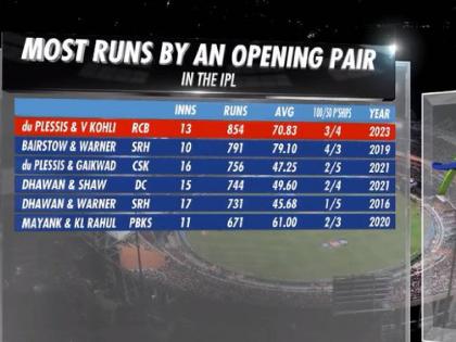 विराटने आयपीएल २०२३ मध्ये ५०० धावांचा टप्पाही ओलांडला आणि आयपीएलच्या सहा पर्वात त्याने हा पराक्रम केला. भारतीय फलंदाजांमध्ये असा पराक्रम करणारा विराट एकमेव ठरला. दोघांची फटकेबाजी लाजवाब ठरली आणि त्यांचे टायमिंग कौतुकास्पद होते. भुवीने टाकलेल्या १५व्या षटकात विराटने अप्रतिम पुस्तकी फटके मारून ३ चौकार मिळवले अन् संघाला १५० धावांपर्यंत पोहोचवले. या दोघांनी यंदाच्या पर्वात ८००+ धावांची भागीदारी केली आणि आयपीएल इतिहासात पहिल्या विकेटसाठी एका पर्वातील ही सर्वोत्तम भागीदारी ठरली. यापूर्वी जॉनी बेअरस्टो व डेव्हिड वॉर्नर यांनी २०१९च्या पर्वात १० सामन्यांत ७९१ धावा जोडल्या होत्या.