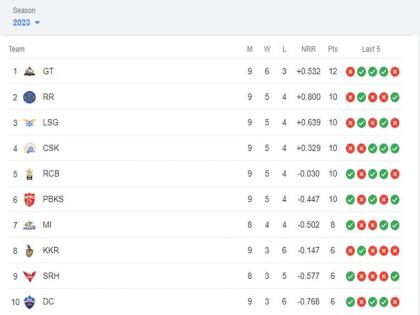 गुणतालिकेत दिल्लीविरुद्धच्या पराभवानंतरही गुजरात पहिल्या स्थानावर आहे. तर राजस्थान दुसऱ्या क्रमांकावर आहे. लखनौ तिसऱ्या क्रमांकावर आणि चेन्नई चौथ्या स्थानावर आहे. आरसीबी १० गुणांसह पाचव्या स्थानावर आहे. तर पंजाब सहाव्या क्रमांकावर, मुंबई सातव्या क्रमांकावर, कोलकाता आठव्या क्रमांकावर, हैदराबाद नवव्या स्थानावर आणि दिल्ली ६ गुणांसह दहाव्या क्रमांकावर आहे.