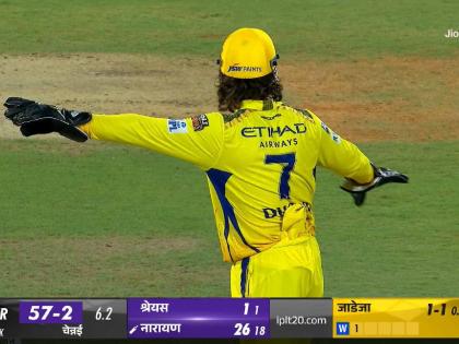 महेंद्रसिंग धोनीने खास फिल्डींग लावलेली आणि लाँग ऑफवर थिक्षणाने झेल घेतला. जडेजाने त्याच्या पुढच्या षटकात वेंकटेश अय्यरला ( ३) माघारी पाठवून KKR ला चौथा धक्का दिला.