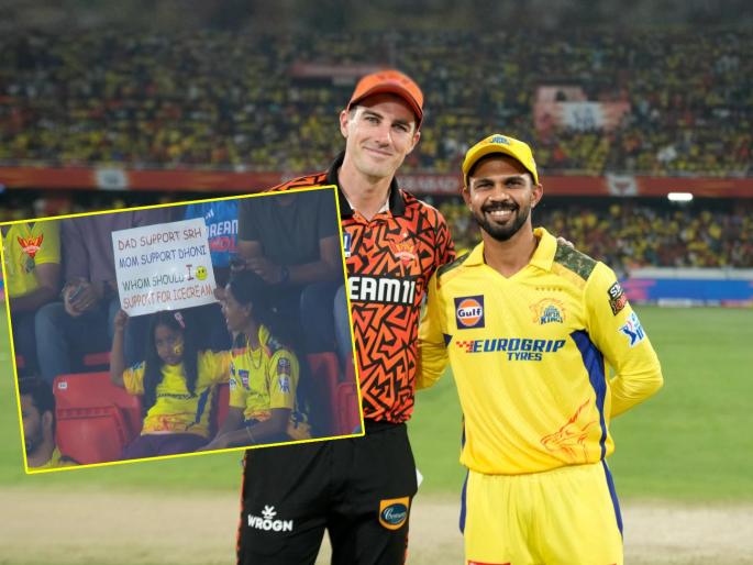 चिमुकलीने झळकवलेल्या पोस्टरमध्ये लिहिले आहे की, पप्पा सनरायझर्स हैदराबादला सपोर्ट करतात... मम्मी महेंद्रसिंग धोनीची फॅन आहे... मग मी आईस्क्रीमसाठी कोणाला सपोर्ट करायला हवा. आयपीएलच्या सतराव्या हंगामातील अठरावा सामना सनरायझर्स हैदराबाद आणि चेन्नई सुपर किंग्ज यांच्यात होत आहे. हैदराबादचा कर्णधार पॅट कमिन्सने नाणेफेक जिंकून प्रथम गोलंदाजी करण्याचा निर्णय घेतला.