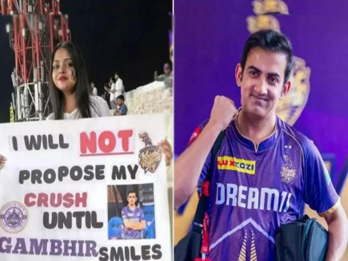 केकेरआरच्या फॅनने सामन्यादरम्यान एक भन्नाट कॅप्शन असलेले पोस्टर झळकावले. तिने यावर लिहिले की, जोपर्यंत गौतम गंभीर हसत नाही तोपर्यंत मी माझ्या क्रशला प्रपोज करणार नाही. हे पोस्टर पाहून गौतम गंभीरने सोशल मीडियाच्या माध्यमातून प्रतिक्रिया दिली आहे.