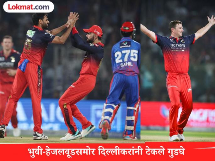 भुवनेश्वर कुमारनं आपल्या पहिल्याच षटकातील दुसऱ्या चेंडूवर पदार्पणाचा सामना खेळणाऱ्या १८ वर्षीय साहिल पारख याला खातेही न उघडता तंबूचा रस्ता दाखवला. जोश हेजलवूडनं लोकेश राहुलची विकेट घेत आपलं खाते उघडलं. त्याची जागा घेण्यासाठी आलेल्या समीर रिझवीला आल्या पावली माघारी धाडत हेजलवूड हॅटट्रिकवर पोहचला होता. दिल्ली कॅपिटल्सच्या डावातील तिसऱ्या आणि आपल्या वैयक्तिक दुसऱ्या षटकात भुवीनं ट्रिस्टन स्टब्स आणि अक्षर पटेलची विकेट घेतली. चौथ्या षटकात हेलवूडनं नितिश राणाची शिकार केली. RCB च्या ताफ्यातील दोन जलदगती गोलंदाजांच्या जणू विकेट घेण्याची स्पर्धाच रंगल्याचे चित्र पाहायला मिळाले.