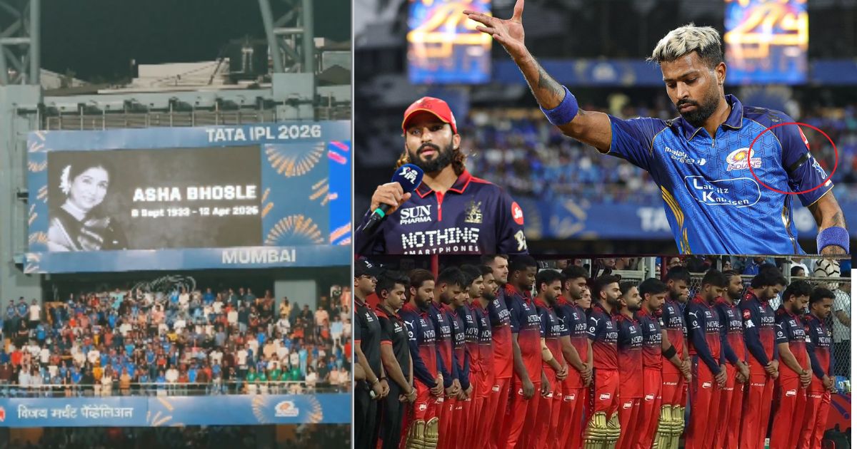 Web Summary : Mumbai Indians and Royal Challengers Bangalore players wore black armbands and observed a moment of silence at Wankhede Stadium to honor the late Asha Bhosle, who passed away at 93. Cricket fans joined in paying tribute to the legendary singer.