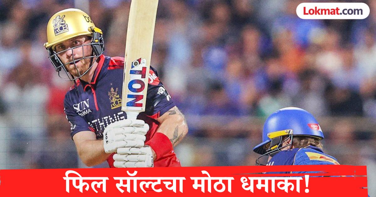 IPL 2026 MI vs RCB Phil Salt Record With Fiery Fifty फिल सॉल्टनं राजस्थान रॉयल्सविरुद्धच्या सामन्यात पहिल्या चेंडूवर 'गोल्डन डक'ची नामुष्की ओढावल्याचा सगळा राग मुंबई इंडियन्सच्या गोलंदाजावर काढल्याचे पाहायला मिळाले. वानखेडेच्या मैदानात रंगलेल्या सामन्यात रॉयल चॅलेंजर्स बंगळुरुच्या सलामीवीराने यंदाच्या हंगामातील पहिले अर्धशतक झळकावताना संघाला दमदार सुरुवात करून दिली.