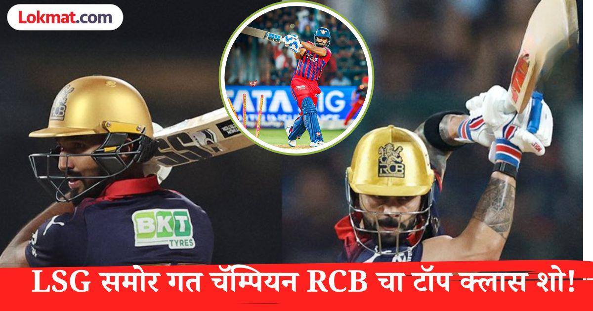 किंग कोहलीचं अर्धशतक हुकले, पण त्याची खेळी ठरली इम्पॅक्टफुल या अल्प धावसंख्येचा पाठलाग करताना फिल सॉल्ट अवघ्या ७ धावंवर परतला. देवदत्त पडिक्कल हा देखील १० धावांवर माघारी फिरला. पण या दोन विकेट्स गमावल्यावर शंभर टक्के फिट नसलेल्या विराट कोहलीनं ३४ चेंडूत ४९ धावांची खेळी करत लखनौच्या गोलंदाजांचे खांदे पाडले. कर्णधार रजत पाटीदारनं १३ चेंडूत २७ धावांची धमाकेदार खेळी करत संघाला विजयाच्या जवळ नेले. जितेश शर्मा ९ चेंडूत २३ धावांची खेळी करुन परतल्यावर टीम डेविड १४ (८) आणि रोमारियो शेफर्ड १४ (८) या दोघांनी १६ व्या षटकातील पहिल्याच चेंडूवर आरसीबीचा विजय निश्चित केला.
