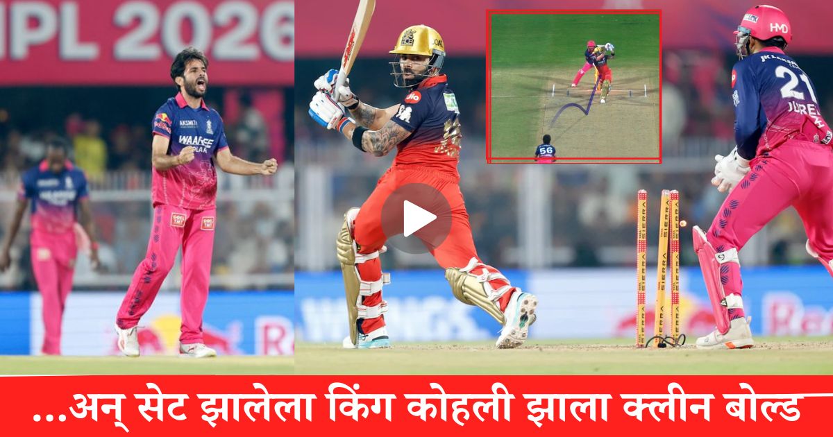 IPL 2026 RR vs RCB Virat Kohli Clean Bowled By Ravi Bishnoi : राजस्थान रॉयल्स विरुद्धच्या सामन्यात रॉयल्स चॅलेंजर्स बंगळुरुच्या संघाने पहिल्या चेंडूवर पहिली विकेट गमावल्यावर विराट कोहलीने संघाचा डाव सावरणारी खेळी केली. स्टार बॅटरनं आपल्या बॅटिंगमधील क्लास दाखवत ७ खणखणीत चौकारासह संघाचा डाव सावरण्यात पुढाकार घेतला. तो सेट झाला असताना रवी बिश्नोई गोलंदाजीला आला अन् त्याने किंग कोहलीला आपल्या फिरकीच्या जाळ्यात फसवले. जादूई चेंडू टाकत बिश्नोईनं विराट कोहलीला क्लीन बोल्ड करत आपले खाते उघडले. विराट कोहलीनं १६ चेंडूत २०० च्या स्ट्राईक रेटनं ३२ धावा केल्या.
