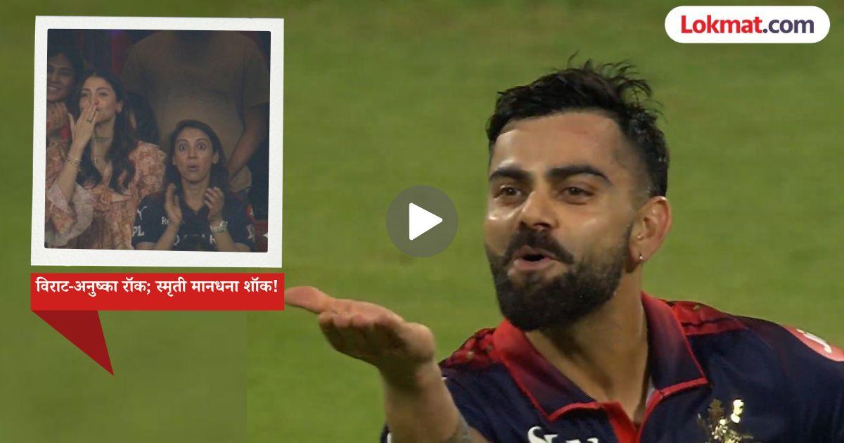विराटचा प्रेम व्यक्त करण्याचा हा अंदाज पाहून अनुष्काच्या शेजारी बसून मॅचचा आनंद घेणारी टीम इंडियाची क्वीन आणि आरसीबी महिला संघाची कर्णधार स्मृती मानधनाही आश्चर्यचिकत झाली. एम. चिन्नास्वामी मैदानात रंगलेल्या विरुष्काच्या प्रेमाचा खेळ अन् ते पाहून स्मृती मानधनाने दिलेली रिअॅक्शन सोशल मीडियावर व्हायरल होताना दिसत आहे.