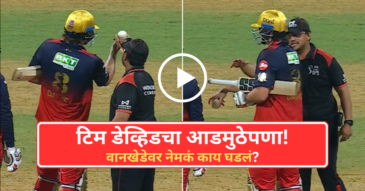 आरसीबीची फलंदाजी सुरू असताना ही घटना घडली. सामन्यादरम्यान चेंडूच्या स्थितीबाबत काही शंका निर्माण झाल्या. नियमानुसार, चेंडूची तपासणी करणे आणि तो बदलायचा की नाही? याचा अंतिम निर्णय घेण्याचा अधिकार केवळ पंचांचा असतो. पंच जेव्हा चेंडूची पाहणी करत होते, तेव्हा टिम डेव्हिड तिथे आला आणि त्याने पंचांच्या हातातील चेंडू हिसकावून घेतला आणि त्याची तपासणी केली.