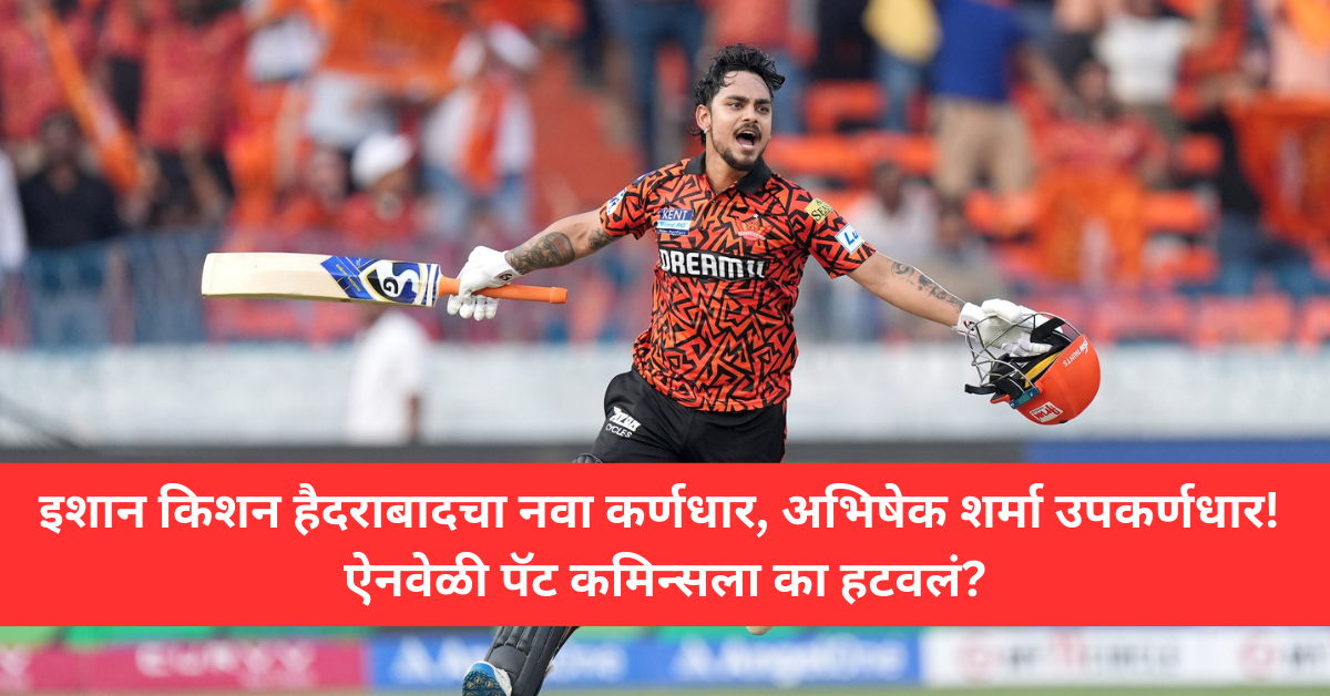 आयपीएल २०२६ चा हंगाम सुरू होण्यापूर्वीच सनरायझर्स हैदराबादच्या संघाने एक अत्यंत धाडसी आणि अनपेक्षित निर्णय घेतला. संघाचा नियमित कर्णधार पॅट कमिन्स दुखापतीमुळे सुरुवातीच्या काही सामन्यांसाठी उपलब्ध नसल्याने, फ्रँचायझीने भारतीय यष्टीरक्षक-फलंदाज इशान किशनच्या खांद्यावर कर्णधारपदाची जबाबदारी सोपवली आहे. तर, पॅट कमिन्स उपकर्णधार असेल.