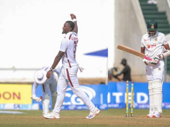 West Indies vs Bangladesh, 2nd Test : वेस्ट इंडिजच्या ताफ्यातील जेडन सील्स (Jayden Seales) याने जमेकाच्या मैदानात सुरु असलेल्या बांगलादेश विरुद्धच्या कसोटीत जबरदस्त स्पेल टाकालाय. १५.५ षटके गोलंदाजी करताना १० निर्धाव षटकांसह ५ धावा खर्च करुन त्याने बांगलादेशच्या ४ फलंदाजांना तंबूचा रस्ता दाखवला. कसोटी क्रिकेटच्या आतापर्यंतच्या इतिहासात एका डावात सर्वात कमी इकॉनॉमी रेटसह गोलंदाजी करणारा तो सातवा गोलंदाज ठरलाय.