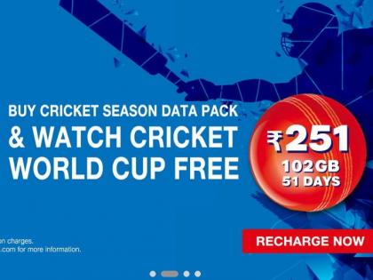या डेटा पॅकची किंमत 251 रुपये आहे. याचा फायदा असा की तुमचे आधीचे पॅक 1 किंवा 1.5 जीबी डाटा दिवसाचे असेल तर डाटा लवकर संपण्याची शक्यता आहे. यामुळे मॅच पाहताना खंड पडू शकतो. जर 251 रुपयांचे जादा पॅक घेतल्यास जादाचा 2 जीबीचा डेटा मिळणार आहे. याद्वारे विनाखंड क्रिकेटचा आनंद घेता येणार आहे. वर्ल्डकपचा अंतिम सामना 14 जुलैला होणार आहे. यामुळे 51 दिवसांची व्हॅलिडीटी या दिवसापर्यंत पुरणार आहे.