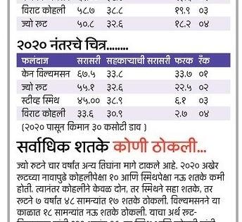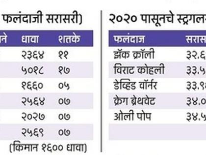 २०२० नंतर चित्र अचानक बदलले. विल्यसमन आणि रूट यांनी फॉर्म केवळ कायम राखला नाही तर त्यात सुधारणाही केली. जो स्मिथ शिखरावर होता, तो जमिनीवर आला. कोहलीच्या फॉर्ममध्ये तर सातत्याने घसरण झाली. २०२० पासून आतापर्यंत २४ फलंदाजांनी किमान १६०० धावा काढल्या. त्यात झॅक क्रॉलीची सरासरी ३३.५९ इतकी आहे. दुसरीकडे विल्यमसनची सरासरी कोहलीच्या तुलनेत दुपटीहून अधिक ठरली.
