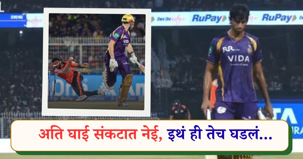 अजिंक्य रहाणेच्या नेतृत्वाखालील कोलकाता नाईट रायडर्स संघाला आपल्या घरच्या मैदानात यंदाच्या हंगामातील सलग दुसऱ्या पराभवाची नामुष्की ओढावली. सनरायझर्स हैदराबाद संघाने दिलेल्या विक्रमी २२७ धावसंख्येचा पाठलाग करताना कोलकाता नाईट रायडर्सचा संघ १६ षटकांतच १६१ धावांवर आटोपला. या सामन्यात धावबादच्या रुपात गमावलेल्या दोन विकेट्सची मोठी किंमत त्यांना मोजावी लागली. ज्या खेळाडूवर २५ कोटींचा डाव लावला त्याने KKR ला पुन्हा चुना लावला. त्यात रिंकू आणि अंगकृष रघुवंशीं यांच्या घाईनं संघाच्या अडचणीत आणखी भर घातली.