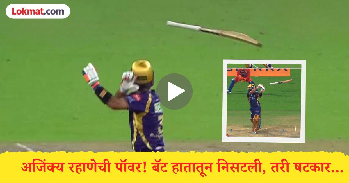 बऱ्याच दिवसांपासून टीम इंडिया बाहेर असलेला आणि कसोटीपटू अशी ओळख असलेला अजिंक्य रहाणे टी-२० क्रिकेटमध्ये एका वेगळ्याच फॉर्ममध्ये दिसत आहे. लखनौ विरुद्धच्या सामन्यात त्याने आपल्या भात्यातील खास फटकेबाजीचा नजराणा पेश केला. कोलकाता नाईट रायडर्सच्या डावातील नवव्या षटकात आवेश खान गोलंदाजी करत होता. या षटकातील पहिल्याच चेंडूवर अजिंक्य रहाणे याने जोरदार फटका खेळला. त्याच्या हातून बॅट निसटून ती स्क्वेअर लेगकडे जाऊन पडली. पण त्याच्या फटक्यात इतकी ताकद इतकी होती की, चेंडू डीप बॅकवर्ड पॉइंटच्या सीमारेषेबाहेर जाऊन षटकार ठरला.