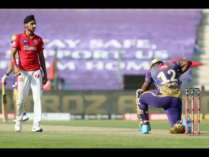 CSKविरुद्धच्या विजयातील नायक राहुल त्रिपाठीचा तिसऱ्याच षटकात मोहम्मद शमीनं त्रिफळा उडवला. पुढच्याच षटकात नितिश राणा आणि शुबमन गिल यांच्यातील सावळा गोंधळ पाहायला मिळाला. गिलनं शॉर्ट फाईन लेगला चेंडू टोलावला आणि नॉन स्ट्रायकर एंडला असलेल्या राणानं क्रिज सोडलं. पण, गिलचं त्याकडे लक्षच नव्हते आणि दोन्ही फलंदाज एकाच एंडला उभे राहिले. निकोलस पूरननं राणाला धावबाद करून माघारी पाठवले. झटपट दोन फलंदाज माघारी गेल्यामुळे KKRने इयॉन मॉर्गनला पुढे पाठवले. मॉर्गन आणि गिल यांनी KKRचा डाव सावरला. KKR vs KXIP Latest and Live News