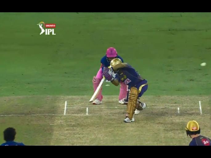 नितिश राणाच्या अपयशाचा पाढा याही सामन्यात कायम राहिला. जोफ्रा आर्चरच्या पहिल्याच षटकातील दुसऱ्या चेंडूवर तो बाद झाला. शुबमन गिल व राहुल त्रिपाठी यांनी दुसऱ्या विकेटसाठी ७२ धावांची भागीदारी करताना KKRची गाडी रुळावर आणली. राहुल टेवाटियानं RRला कमबॅक करून दिलं. त्यानं गिल ( ३६) आणि सुनील नरीन ( ०) यांना सलग दोन चेंडूवर बाद केले. दिनेश कार्तिकही भोपळ्यावर टेवाटियाच्या गोलंदाजीवर माघारी परतला. विचित्र पद्धतीनं तो बाद झाला. आंद्रे रसेलनं ११ चेंडूंत ३ षटकार व १ चौकार मारून २५ धावा चोपल्या. कार्तिक त्यागीला सलग तिसरा षटकार मारण्याच्या प्रयत्नात तो झेलबाद झाला.