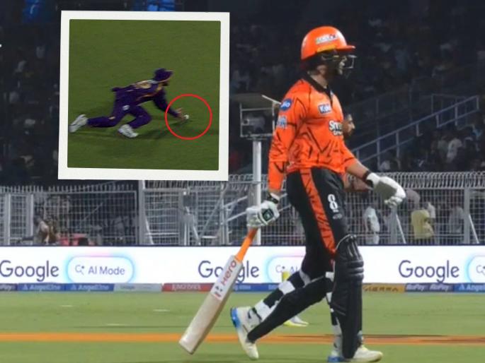 KKR vs SRH Varun Chakravarthy Takes A Controversial Catch To Dismiss Abhishek Sharma : कोलकाता नाईट रायडर्सच्या घरच्या मैदानात नाणेफेक गमावल्यावर पहिल्यांदा फलंदाजी करण्याची वेळ आल्यावर सनरायझर्स हैदराबादच्या संघातील सलामीवीरांनी संघाला धडाकेबाज सुरुवात करून दिली. धमाकेदार फलंदाजी पहिल्या विकेटसाठी अभिषेक शर्मा आणि ट्रविस हेडनं ३४ चेंडूत ८२ धावांची भागीदारी रचली. पण या दोघांनाही अर्धशतक साजरे करता आले नाही.