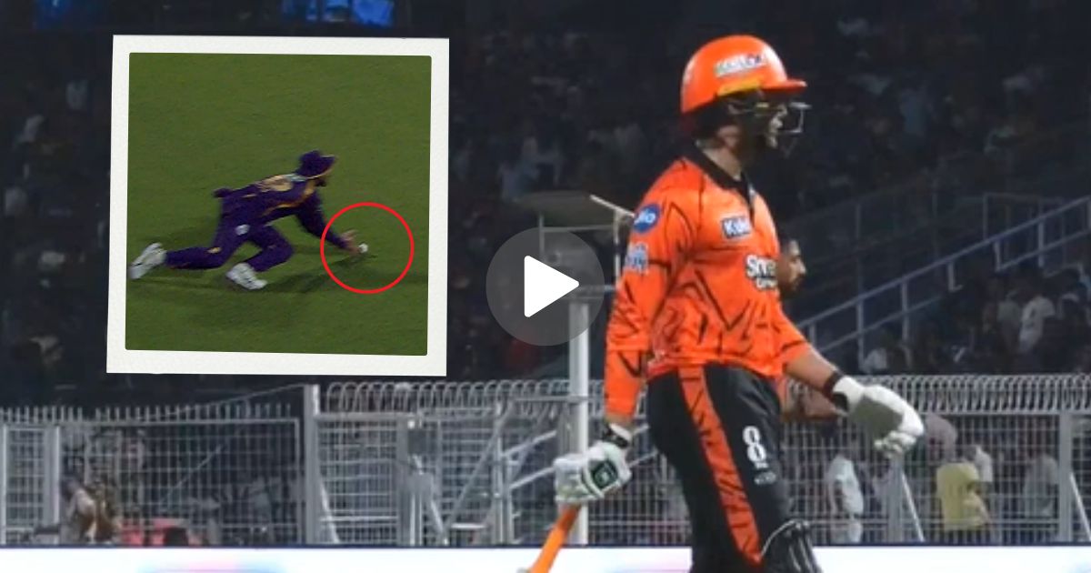 KKR vs SRH Varun Chakravarthy Takes A Controversial Catch To Dismiss Abhishek Sharma : कोलकाता नाईट रायडर्सच्या घरच्या मैदानात नाणेफेक गमावल्यावर पहिल्यांदा फलंदाजी करण्याची वेळ आल्यावर सनरायझर्स हैदराबादच्या संघातील सलामीवीरांनी संघाला धडाकेबाज सुरुवात करून दिली. धमाकेदार फलंदाजी पहिल्या विकेटसाठी अभिषेक शर्मा आणि ट्रविस हेडनं ३४ चेंडूत ८२ धावांची भागीदारी रचली. पण या दोघांनाही अर्धशतक साजरे करता आले नाही.