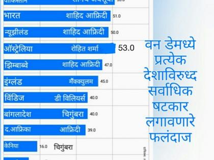 वन डेमध्ये प्रत्येक देशाविरुध्द सर्वाधिक षटकार लगावणारे फलंदाज
