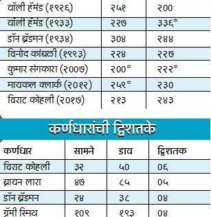 कसोटी क्रिकेटमध्ये सर्वाधिक १२ द्विशतके ठोकण्याचा विक्रम आॅस्ट्रेलियाचे महान फलंदाज डॉन ब्रॅडमन यांच्या नावावर आहे. ब्रॅडमन यांच्याव्यतिरिक्त श्रीलंकेचा कुमार संगकारा (११), ब्रायन लारा (९) आणि इंग्लंडचे वॉली हॅमंड (७) आणि श्रीलंकेचा माहेला जयवर्धने (७) यांनी कसोटी क्रिकेटमध्ये कोहलीपेक्षा अधिक द्विशतकी खेळी केल्या आहेत.