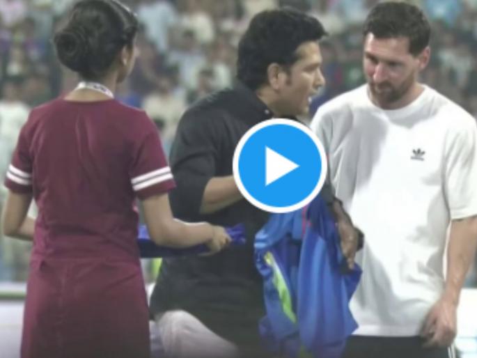 या भेटीदरम्यान सचिन तेंडुलकर याने आपलं नाव असलेली टीम इंडियाची जर्सी मेस्सीला गिफ्टच्या स्वरुपात दिली. रिटर्न गिफ्टच्या स्वरुपात मेस्सीनं मास्टर ब्लास्टर सचिन तेंडुलकरला २०२६ फीफा वर्ल्ड कप स्पर्धेचा अधिकृत फुटबॉल गिफ्ट केल्याचे पाहायला मिळाले. आपापल्या क्षेत्रात १० नंबर जर्सीसह दबदबा दाखवून देणाऱ्या दोन दिग्गजांनी एकत्र फोटोही काढले. या फोटोसह तेंडुलकर-मेस्सी जोडीचा एका फ्रेममधील अविस्मरणीय क्षणाचा खास व्हिडिओ सोशल मीडियावर चर्चेचा विषय ठरत आहे. मुंबईतील वानखेडे स्टेडियमवर झालेल्या कार्यक्रमात मेस्सीनं भारतीय फुटबॉलमधील दिग्गज सुनिल छेत्रीसह अनेक प्रसिद्ध बॉलिवूडकरांनीही मेस्सीची भेट घेतल्याचे पाहायला मिळाले दिली.