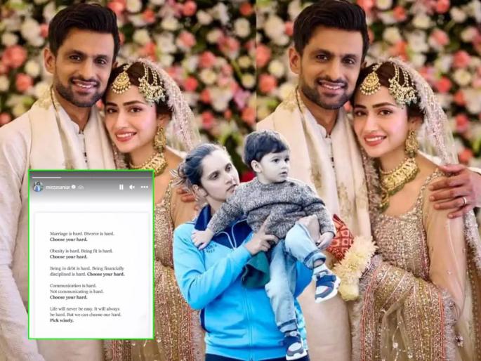 लग्न कठीण आहे. घटस्फोट घेणे कठीण आहे. तुमचे सर्वात कठीण निवडा. तंदुरुस्त राहणे कठीण आहे. तुमचे सर्वात कठीण निवडा. कर्जात अडकणे कठीण आहे. आर्थिकदृष्ट्या शिस्तबद्ध राहणे कठीण आहे. तुमचे सर्वात कठीण निवडा. संवाद अवघड आहे. संवाद न करणे कठीण आहे. तुमचे सर्वात कठीण निवडा. जीवन कधीही सोपे होणार नाही. हे नेहमीच कठीण असेल, परंतु आपण आपले कठोर परिश्रम निवडू शकतो, असे सानियाने स्टेटसमध्ये म्हटले होते.
